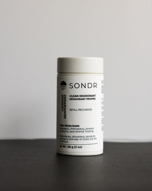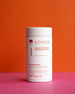 SONDR will continue to strive to be a sustainable option, both in what we put in and on our products. Our low waste deodorants offer the same great ingredients and odour protection, in more sustainable options!